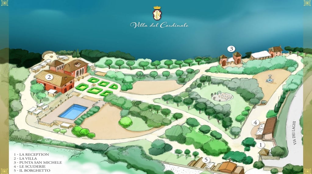 El día central con una ceremonia elegante seguida de un almuerzo sofisticado en los jardines de Villa del Cardinale.
